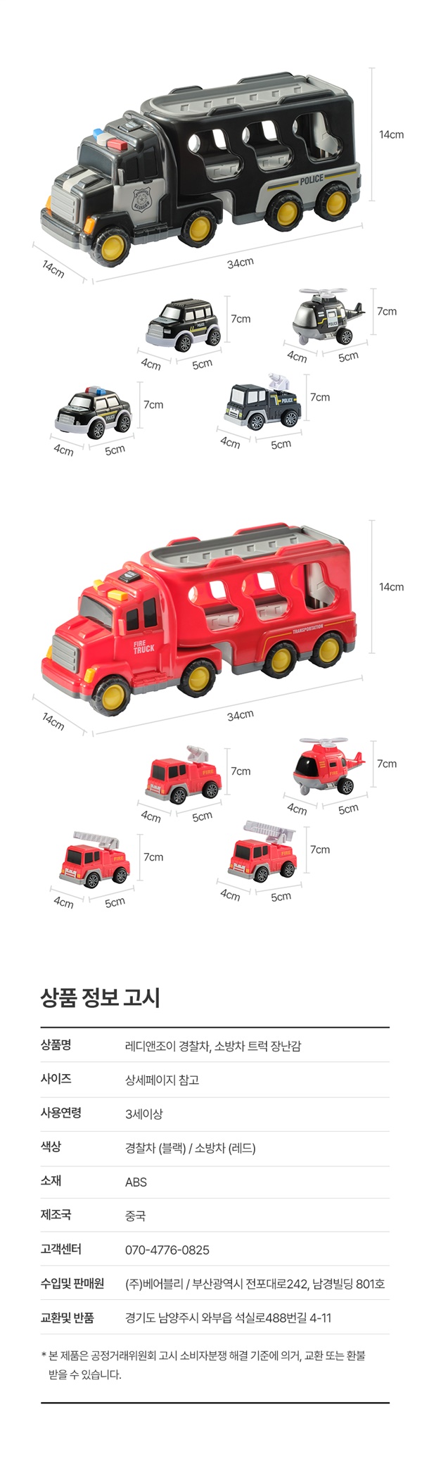 베어블리 트럭장난감 3종