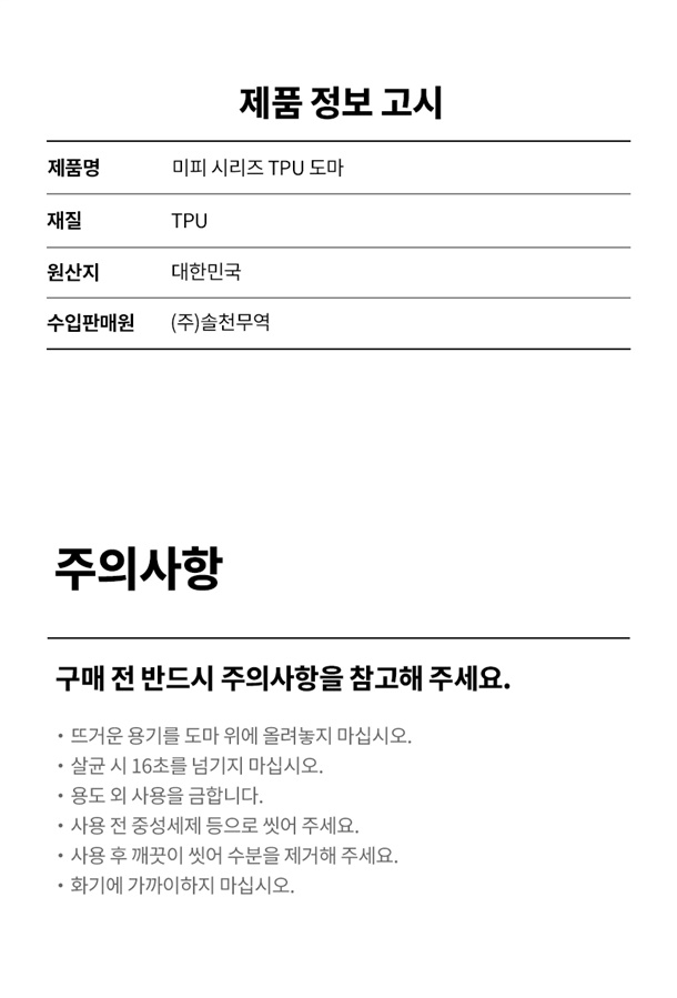 · 계량컵,믹싱볼,도마 별 단순 변심 반품, 교환시 왕복배송료가 각각 부과됩니다.