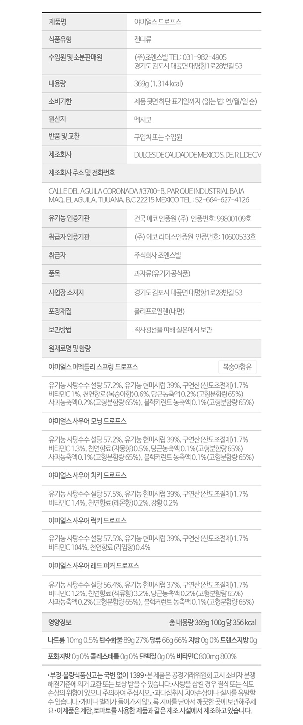 - 드로프스 패밀리팩(369g) : 2028.04.01