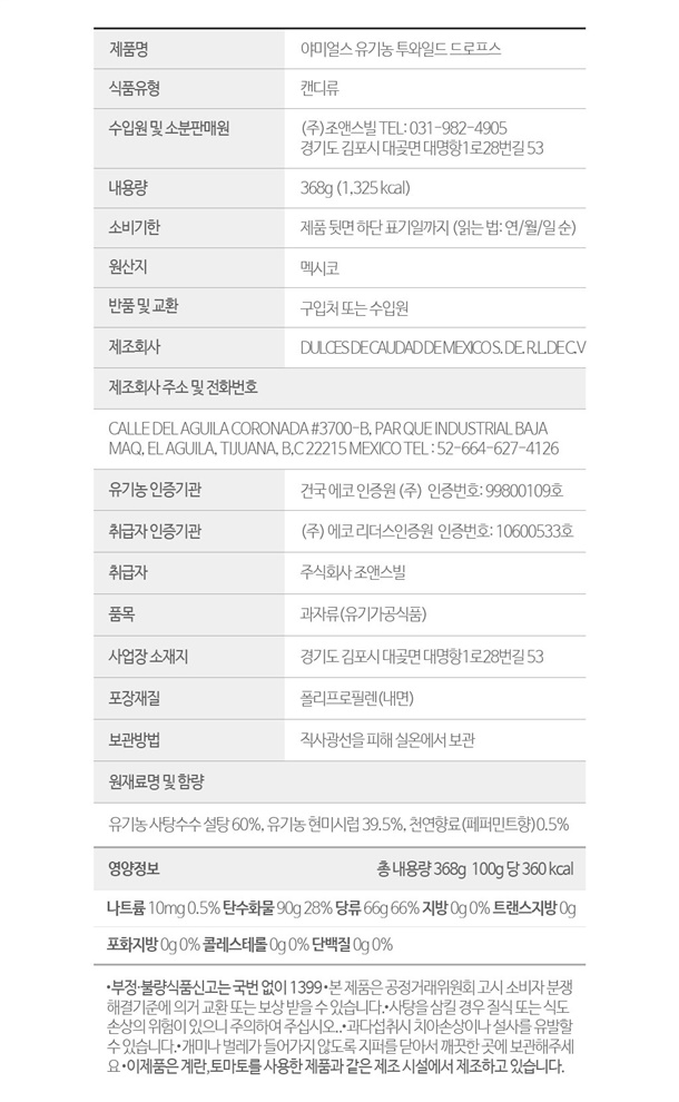 - 유기농 투와일드 드로프스 패밀리팩(368g) : 2027.09.10