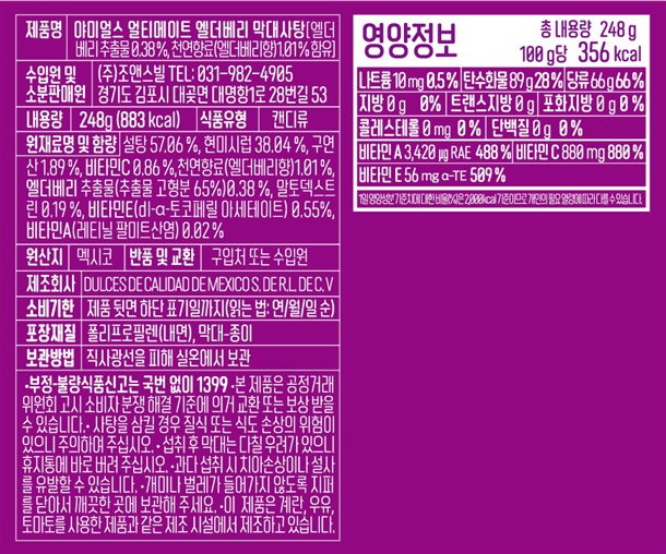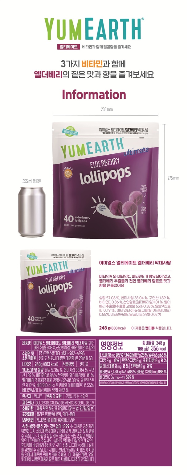 - 얼티메이트 엘더베리 막대사탕(248g) : 2028.04.01