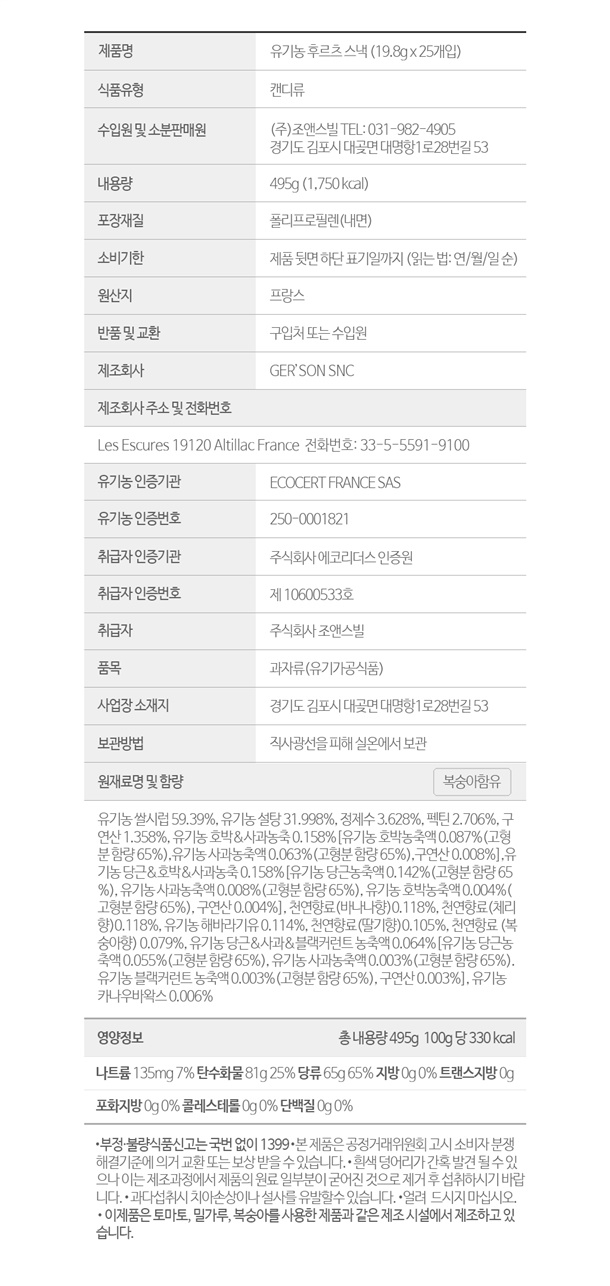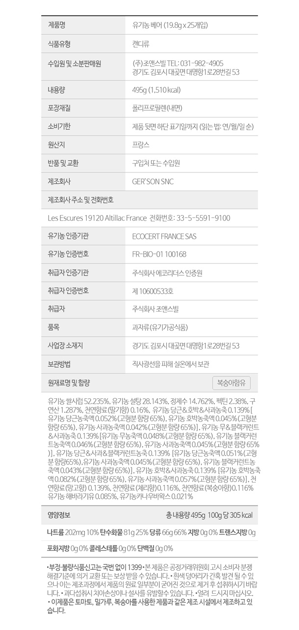 - 유기농 베어 젤리(19.8g) : 2027.09.15