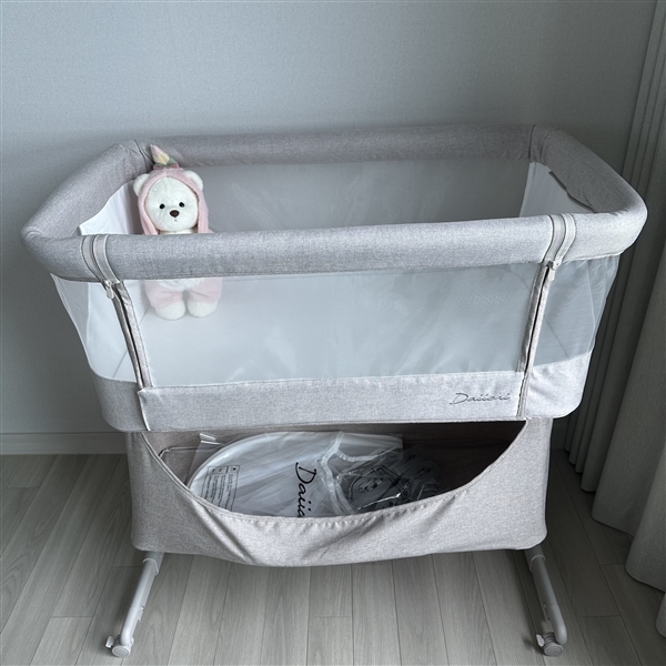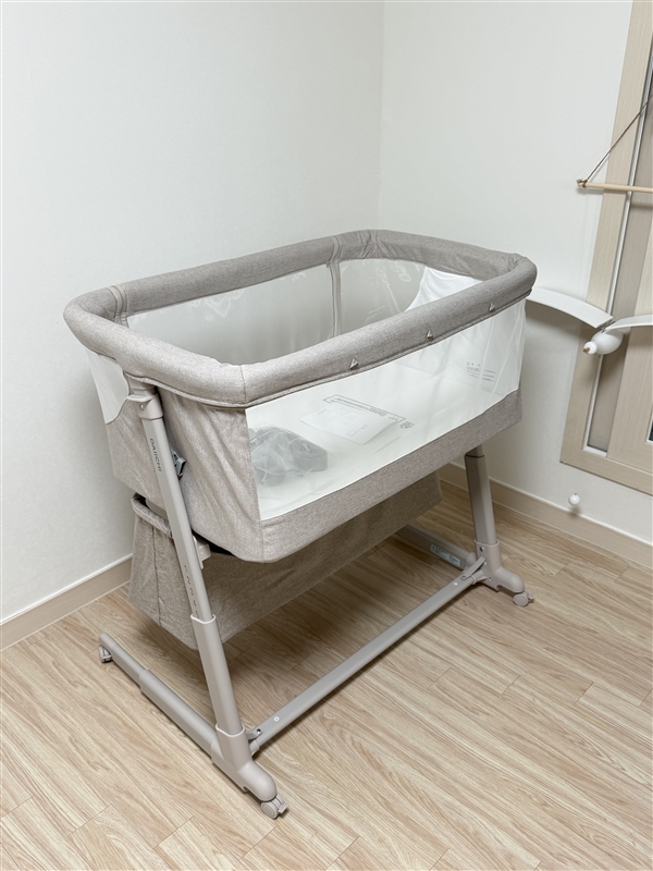이동식 침대를 알아보던 중에 다이치리우 침대를 알게 되었는데 아래 수납함도 넉넉해 실용적이고 막상 받아보니 디자인과 색상, 마감까지 더 맘에 듭니다! 바시넷침대는 리안드림콧이랑 다이치리우가 대표적이라 둘 중에 고민했는데 7단계까지 높이 조절이 되서 평소에는 높은 단계로 쓰면서 키가 큰 남편의 허리에도 부담이 없을 것 같고 밤에 아기가 잠들었을때는 안방침대와 높이를 맞춰 붙여 사용하면 아주 딱이에요~ 거실, 방을 이동하며 쓰기도 아주 딱 맞는 크기로 효율적으로 잘 사용할 것 같습니다~ 요즘은 당근으로도 구매 많이들 하시는데 금액도 차이 안나고 막상 받아보니 아기 첫침대 매우 만족합니다. 내돈내산 추천이요!