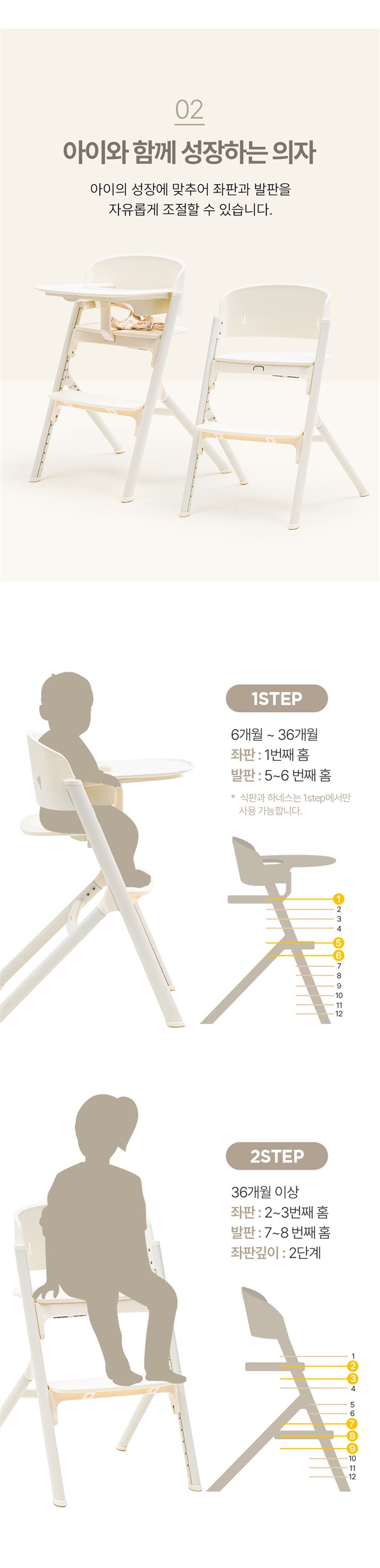 6개월부터 초등학교까지도 사용가능한 Hoo 모던유아 하이체어!